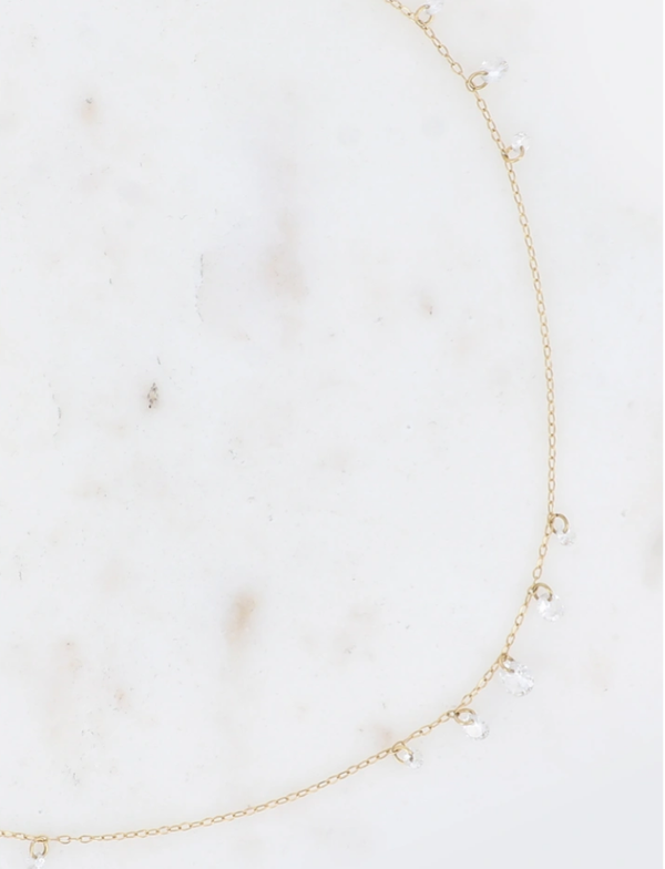 Collier sur chaîne en acier inoxydable composé de 11 petits cristaux.