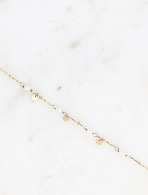 Bracelet sur chaîne en acier inoxydable composé de perles d'eau douce et de pampilles rondes.